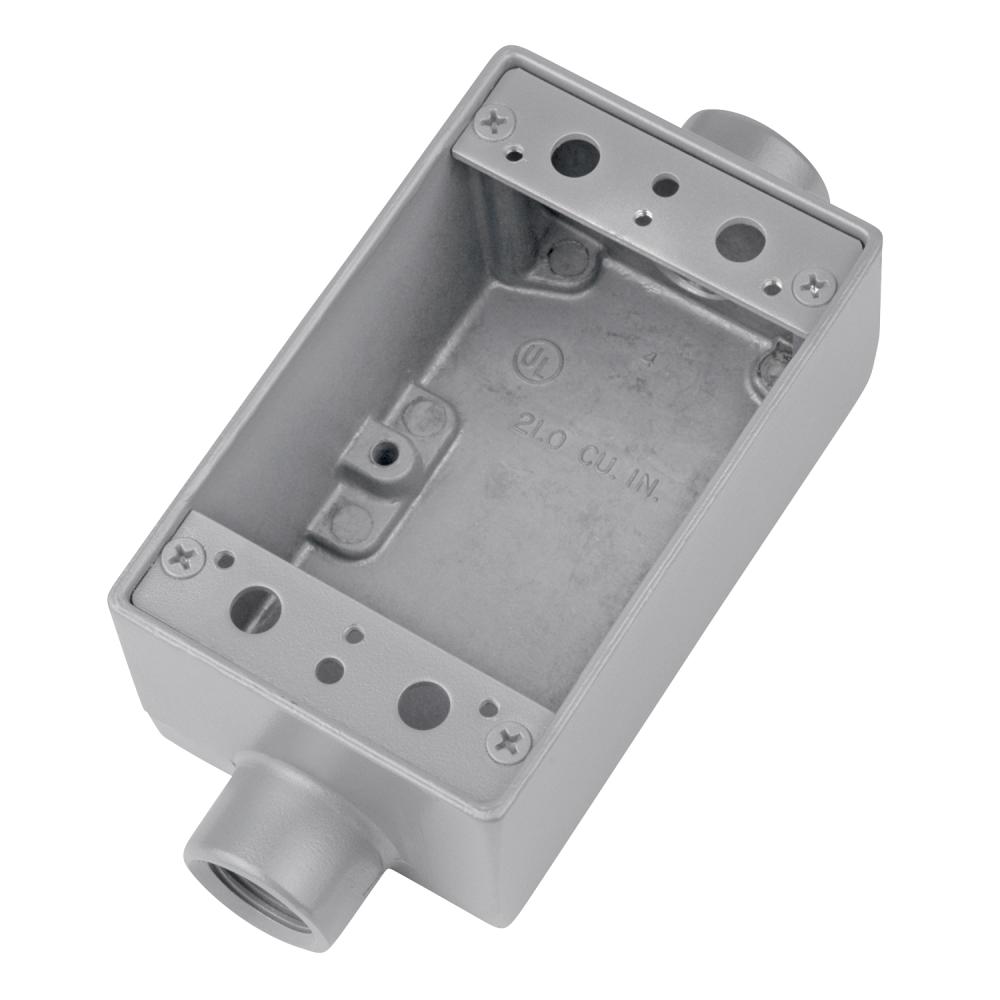 T&B® AFSC-2 Type FSC Feed-Through Shallow Style Device Box, Die Cast Aluminum, 21.6 cu-in, 1 Gang, 2 Outlets, 1 Knockout