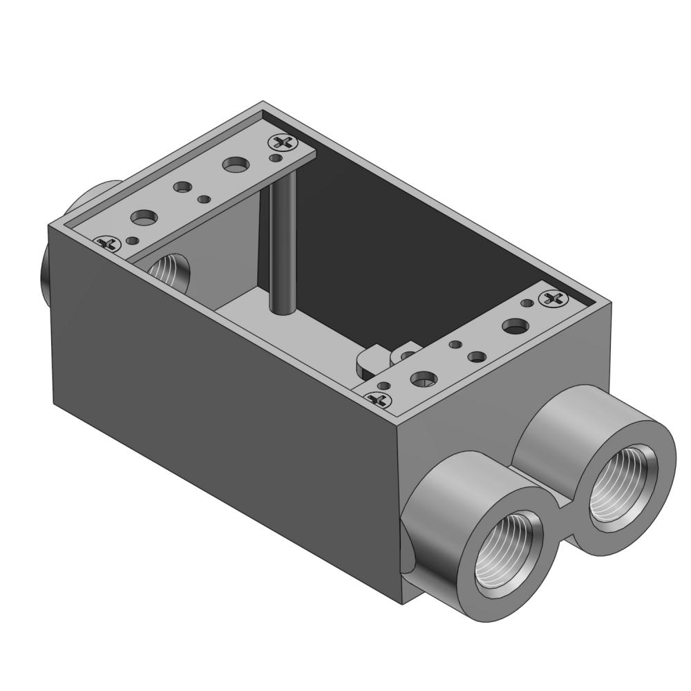 T&B® AFSCC-1 Type FSCC Feed-Through Shallow Style Device Box, Die Cast Aluminum, 21.6 cu-in, 1 Gang, 3 Outlets, 3 Knockouts