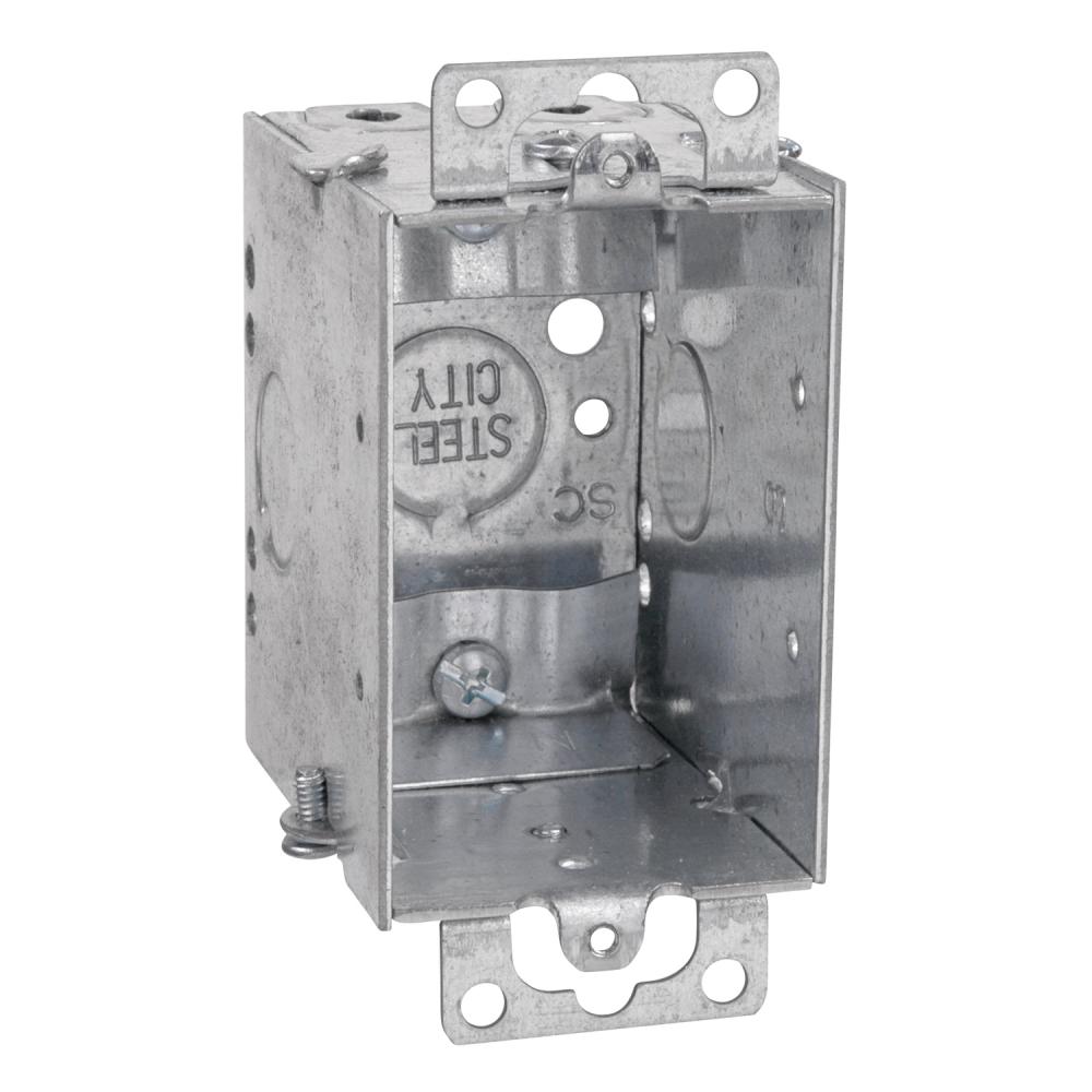 Steel City® CWN-25 Gangable Switch Box, Steel, 14 cu-in, 1 Gang, 1 Outlet, 4 Knockouts