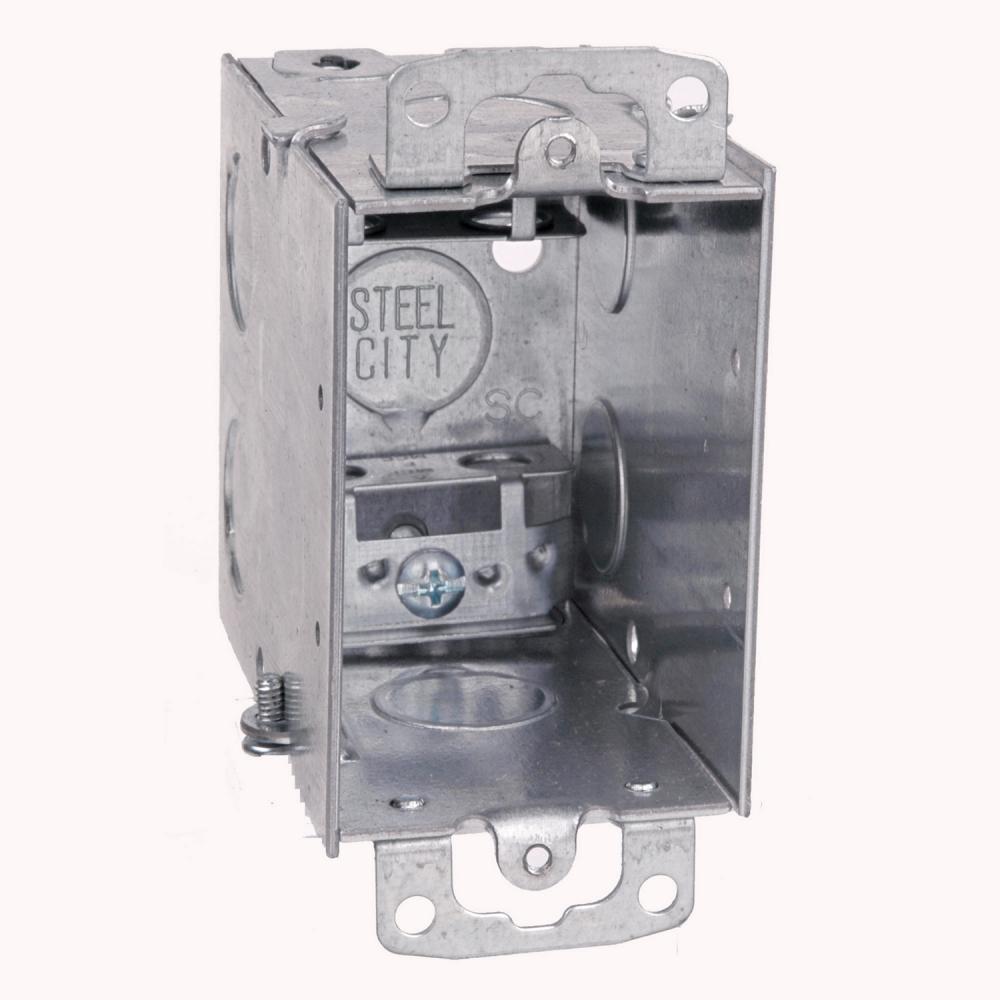 Steel City® CX Gangable Switch Box, Steel, 18 cu-in, 1 Gang, 1 Outlet, 6 Knockouts