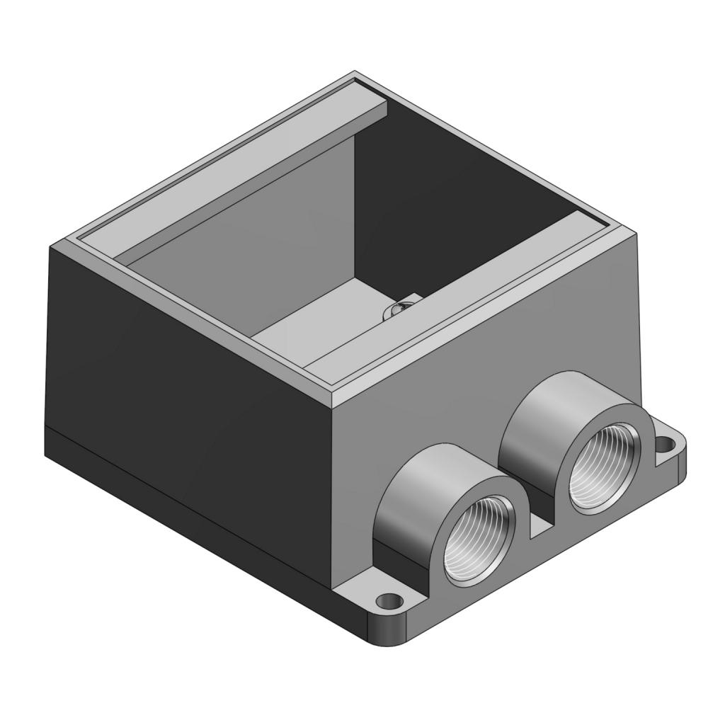 Ocal® FDS222-G Type FDS Dead End Deep Style Device Box, Iron, 2 Gangs, 2 Outlets, 2 Knockouts