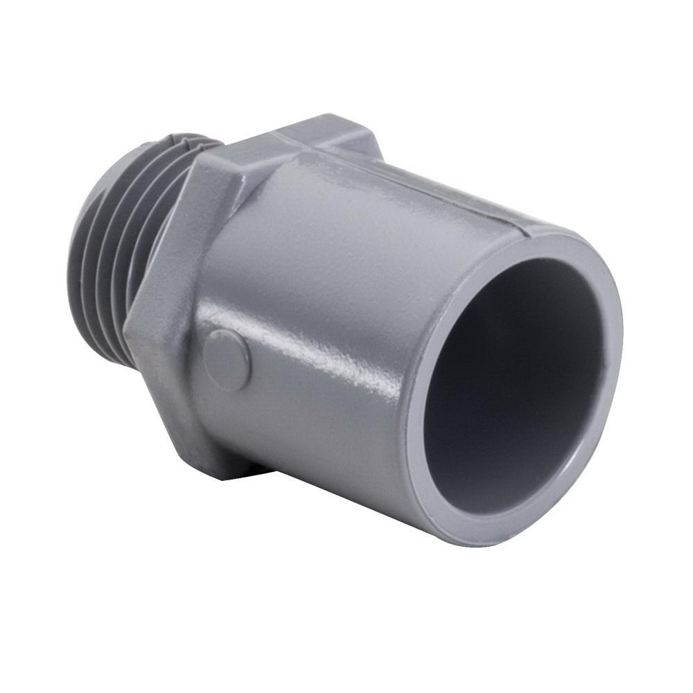 For connector used to transition from plain end PVC conduit to a threaded metal or PVC female bell, can also be used to connect PVC conduit to a box or other threaded body with the use of a locknut
