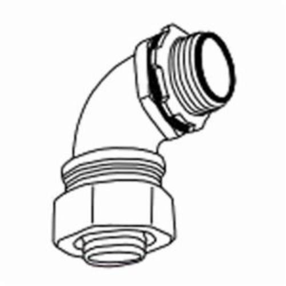 Topaz® 495S Oiltight Raintight Liquidtight Conduit Connector, 1-1/2 in Trade, 90 deg, Malleable Iron, Zinc Plated