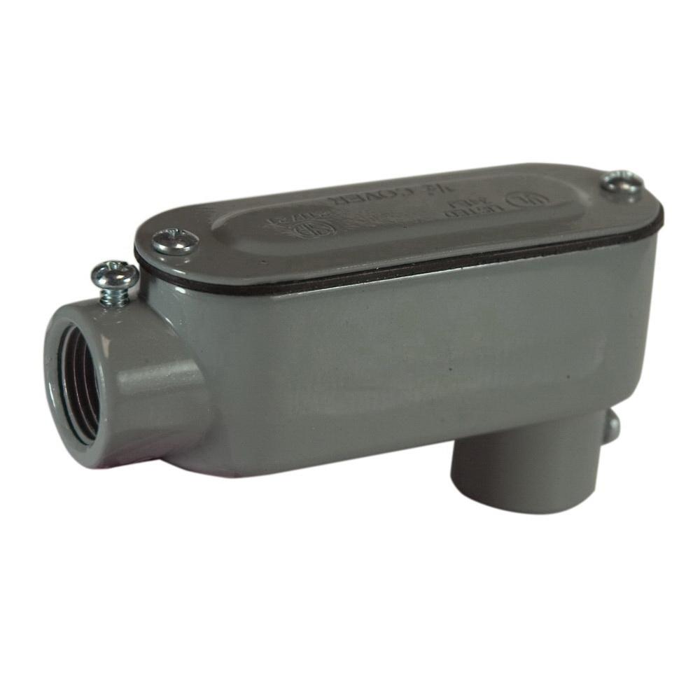 Topaz® LB1SSCG Type LB Combination Conduit Body With Stamped Steel Cover, Neoprene Rubber Gasket, 1/2 in Hub, Die Cast Aluminum, Powder Coated
