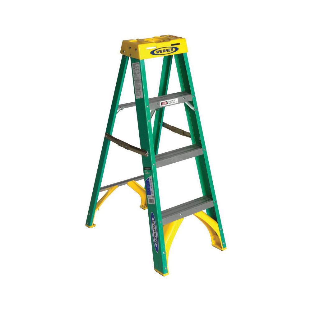 WERNER® 5904 5900 Type II Single Sided Step Ladder, 4 ft H Ladder, 225 lb Load, 3 Steps, Fiberglass