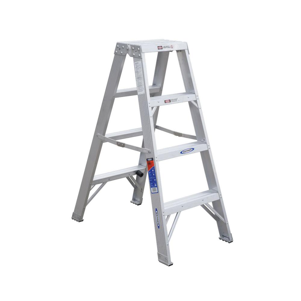 WERNER® T374 T370 Type IA Twin Ladder, 4 ft H Ladder, 300 lb Load, 3 Steps, Aluminum
