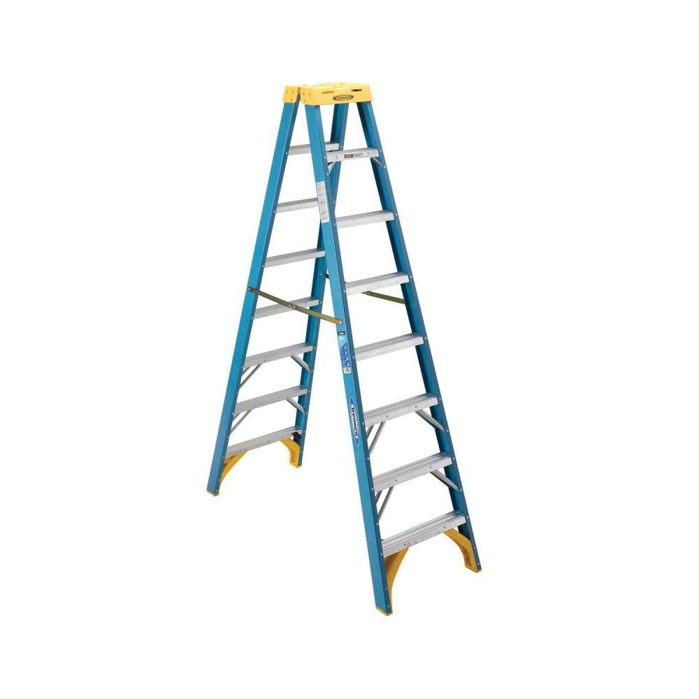 WERNER® T6008 T6000 Type I Twin Ladder, 8 ft H Ladder, 250 lb Load, 7 Steps, Fiberglass